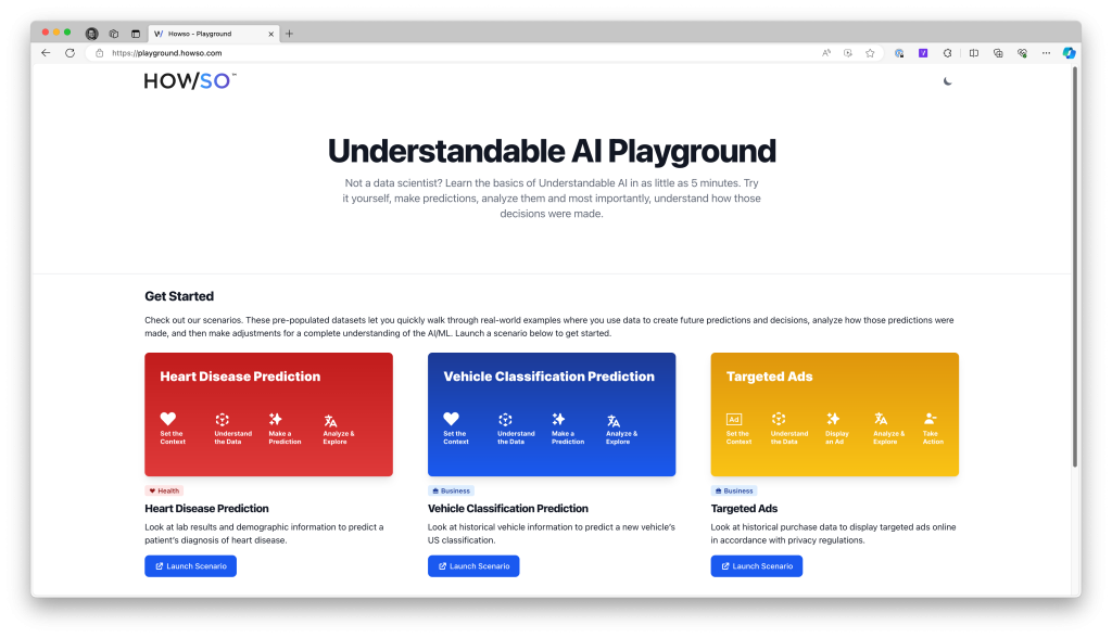 We’ve created a number of scenarios on our playground that show Howso in action. These also explain how our ML/AI works.